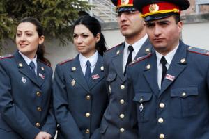 Police cadets stand in front of a re-opened police training centre in Yerevan, 23 March 2007. The Centre was renovated under the OSCE Police Assistance Programme.