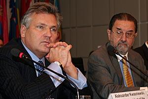 Former Polish President Aleksander Kwasniewski (left) and Spanish Ambassador Carlos Sanchez de Boado, at the OSCE Annual Security Review Conference in Vienna, 19 June 2007.
