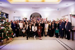 Ambassador Jan Braathu (centre) with the winners of the 2023 OSCE Mission to Serbia Person of the Year Award, Belgrade, 7 December 2023.