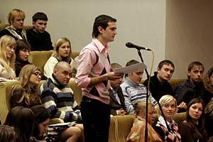 The Office in Minsk organizes information campaigns such as this lecture for law students in March 2007, to explain the role and functioning of an Ombudsman's Office.