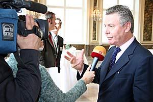 OSCE Chairman-in-Office, Belgian Foreign Minister Karel De Gucht, speaks to journalists at the Hofburg in Vienna, 28 September 2006.