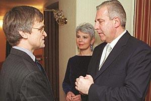 OSCE Mission Head Peter Semneby (left) with Croatian Prime Minister Ivo Sanader (right) and Deputy Prime Minister Jadranka Kosor, 14 January 2004.