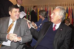 OSCE Secretary General Jan Kubis (left) and Freimut Duve, the Representative on Freedom of the Media, at the OSCE Ministerial Council, in Maastricht 2 December 2003.