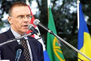 Ambassador Craig Jenness, Head of the OSCE Spillover Monitor Mission to Skopje, addresses the 350 police cadets who finished a three-month training course on 30 July 2003.