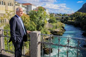 The Head of the OSCE Mission in Kosovo Ambassador Gerard McGurk and Central Election Commission Chair Kreshnik Radoniqi during their meeting ahead of the 12 October 2025 local elections, Prishtinë/Priština, 10 october 2025.