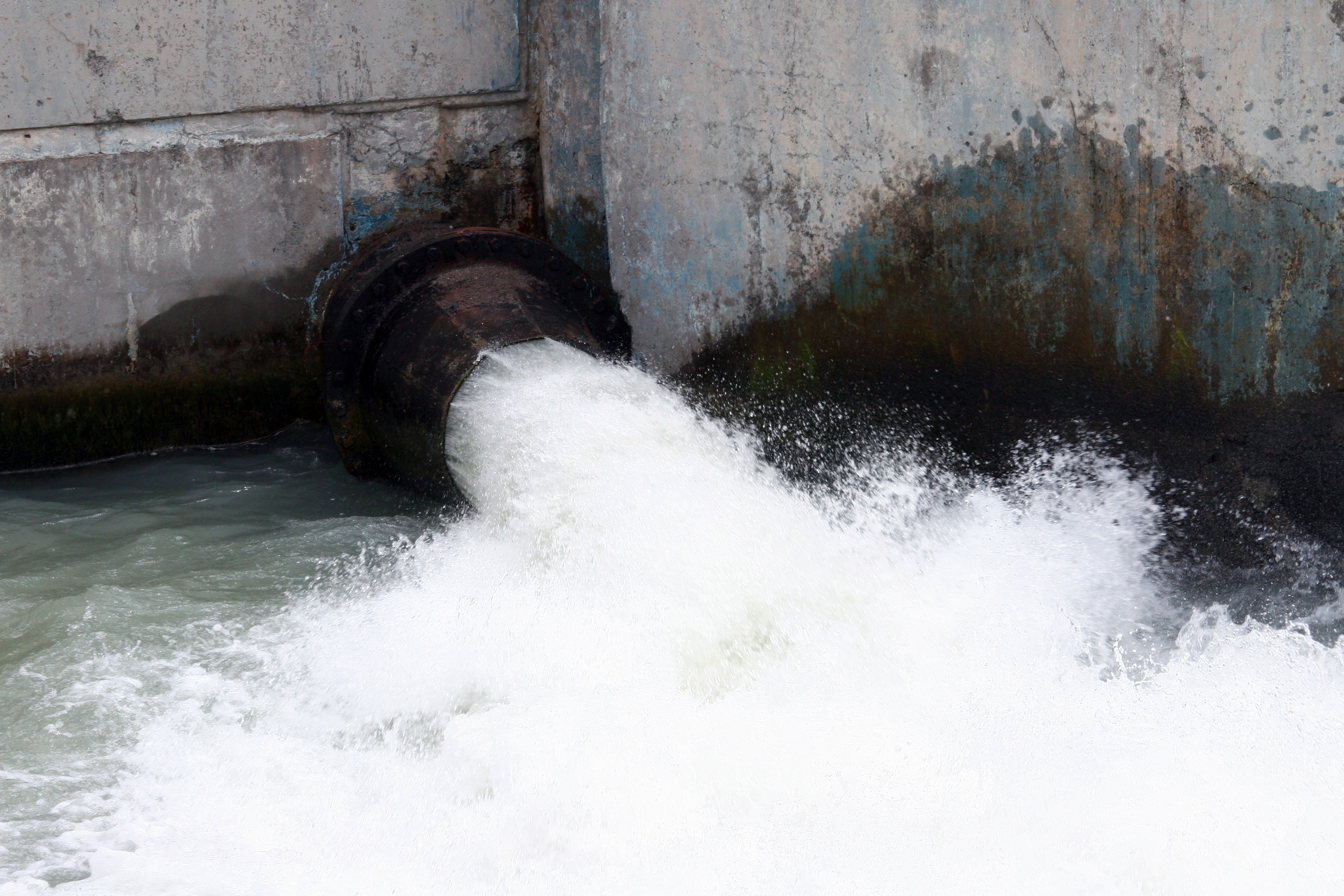 Сильная струя воды, выпущенная из дамбы Зонкари.12 июля 2011 г.