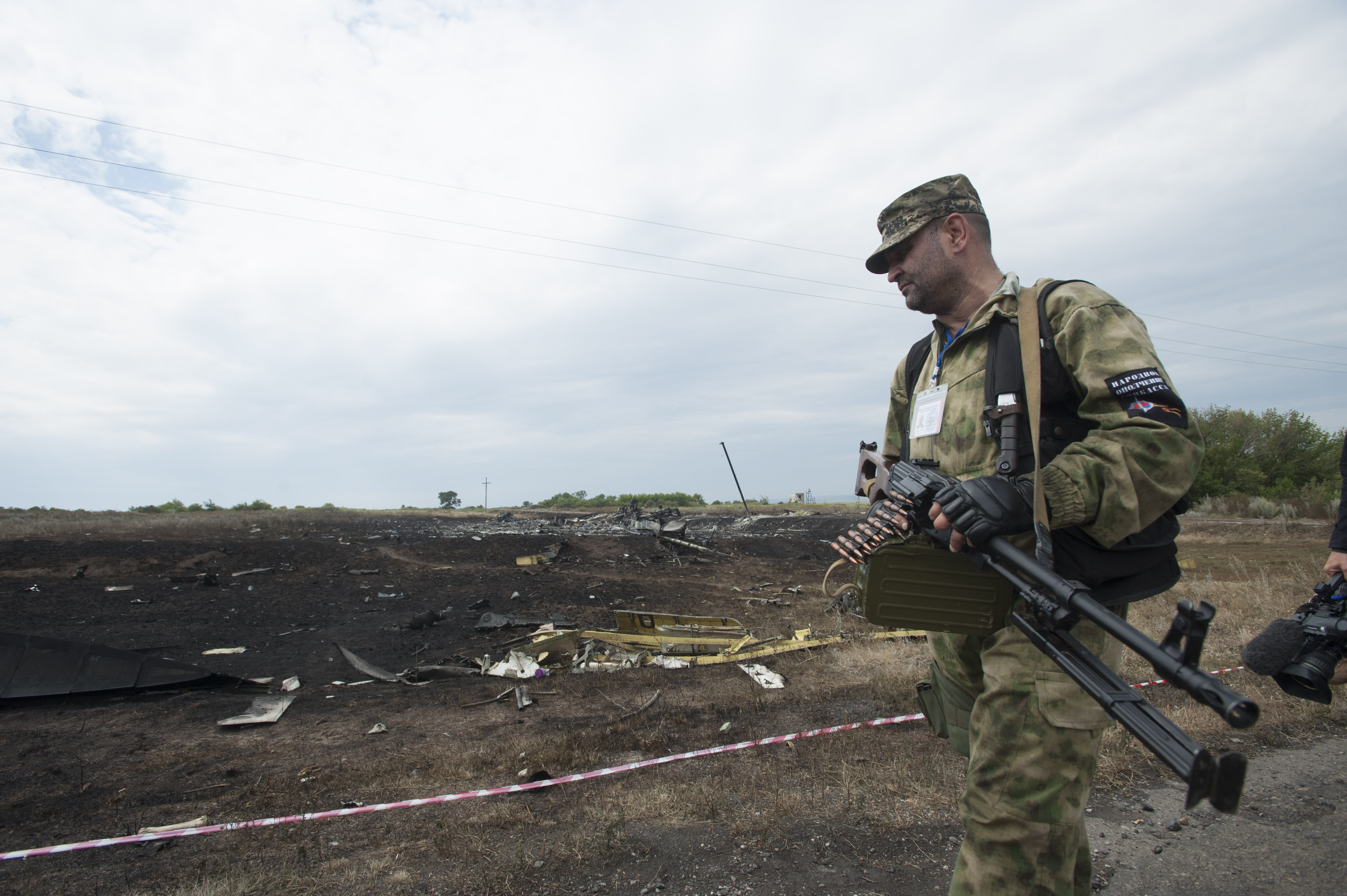 Хорошо вооруженный сепаратист охраняет место аварии MH17.