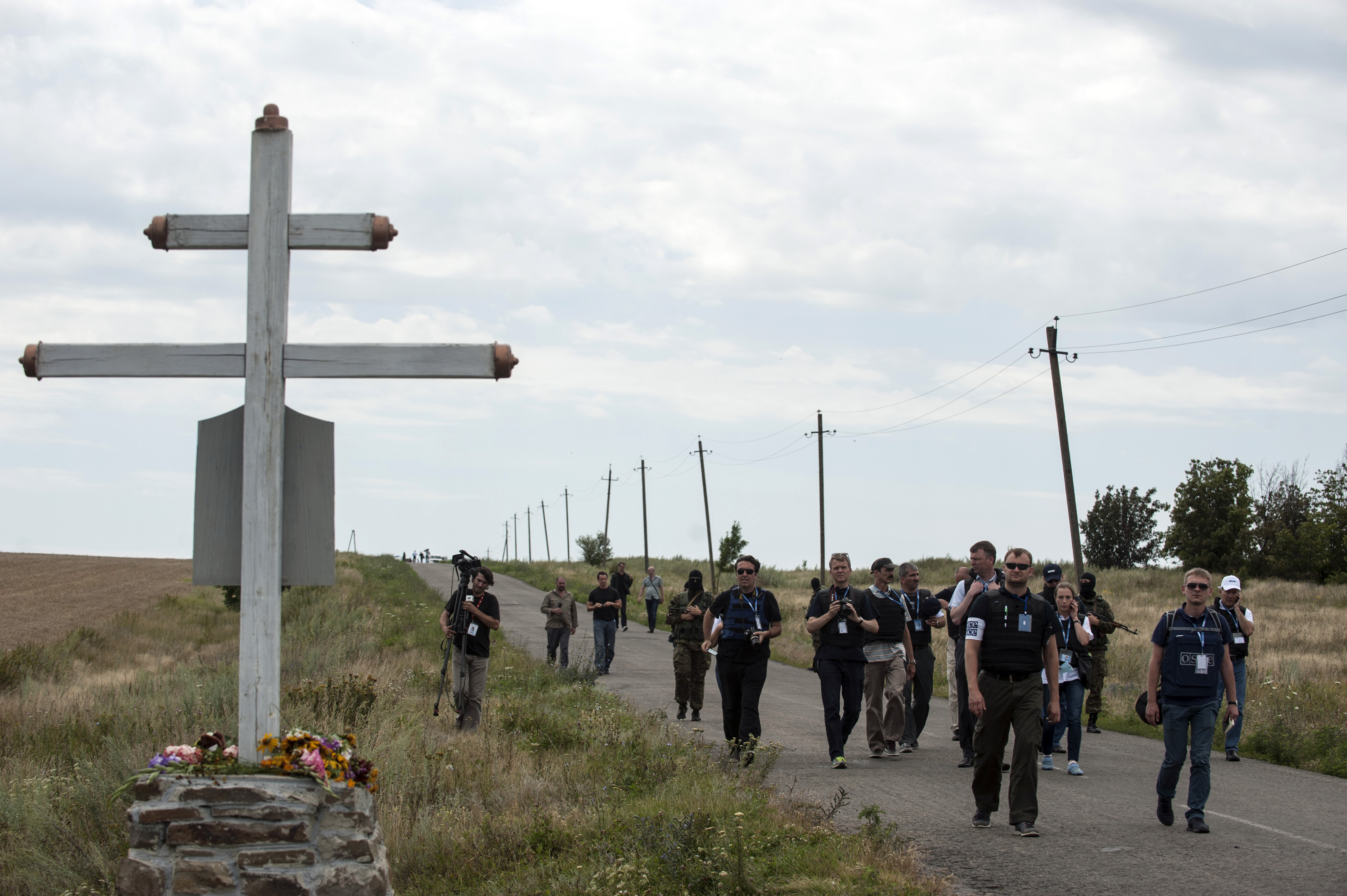 Члены Специальной мониторинговой миссии ОБСЕ в Украине вынуждены идти к месту аварии пешком; их сопровождают сепаратисты, которые контролируют территорию.