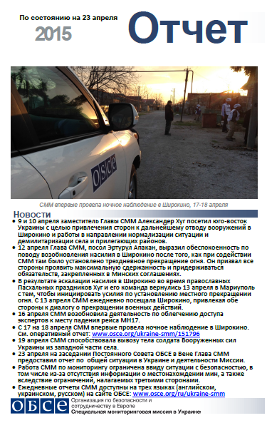 Обложка для Отчета о работе СММ ОБСЕ в Украине по состоянию на 23 апреля 2015