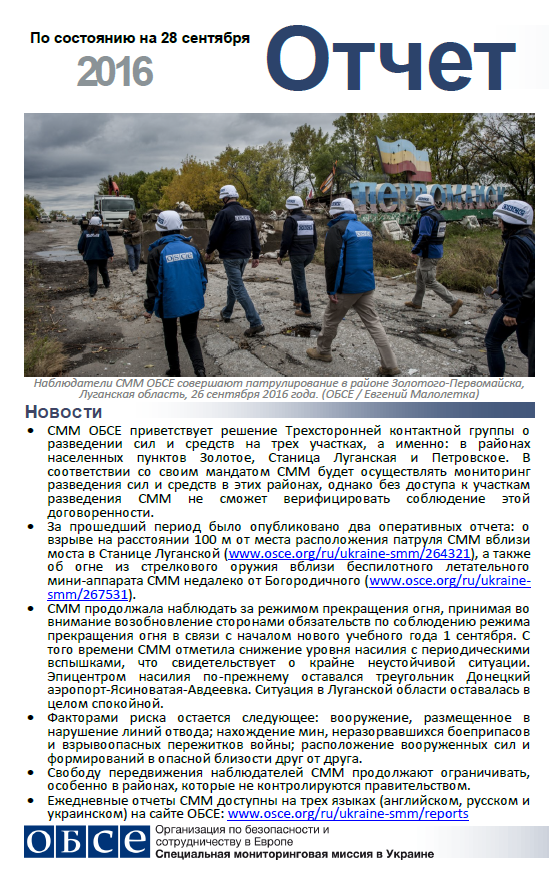Обложка для Отчета о работе по состоянию на 28 сентября 2016 г.