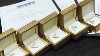 Ambassadors Dominic Schroeder of the United Kingdom, Robert Kvile of Norway, Christian Strohal of Austria, Ayoob Erfani of Afghanistan, Colonel Simon Macrory-Tinning (UK) and Lt Colonel Detlef Hempel (Germany) were given the awards by OSCE Secretary General Lamberto Zannier in a ceremony to mark the end of the 16 days of action against gender-based violence.