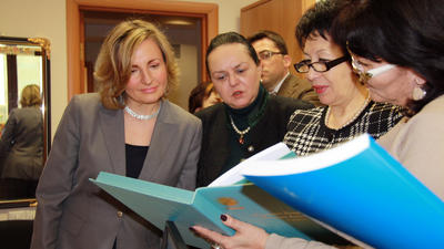 During her four-day visit, the OSCE Co-ordinator and the Deputy Head of OSCE Centre in Astana, Jeannette Kloetzer, met a range of key stakeholders from government and civil society including Foreign Minister Erlan Idrissov, Ambassador-at-Large for Human Rights Usen Suleimen,  Vice-Minister of Justice Elvira Azimova, Vice-Minister of Labour and Social Protection of the Population Kairat Absattarov, the Chairperson of the Committee on the Protection of Children’s Rights, Raisa Sher, several supreme court judges, the Ministry of Interior and the General Prosecutor's office.