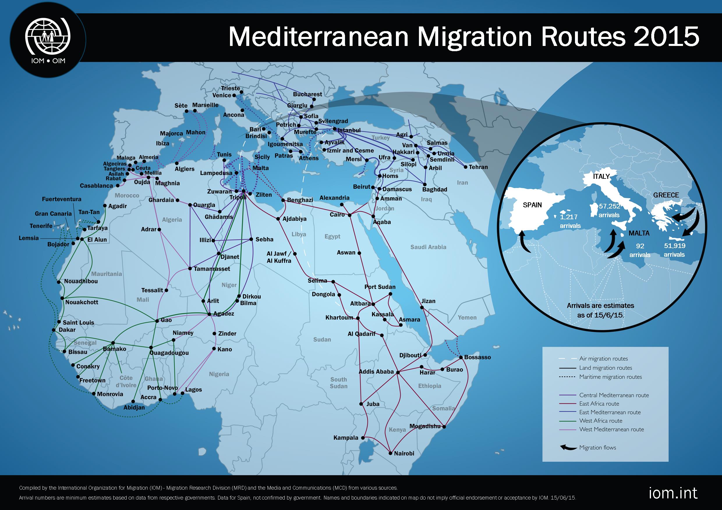 Mediterranean Migration Routes 2015, source IOM