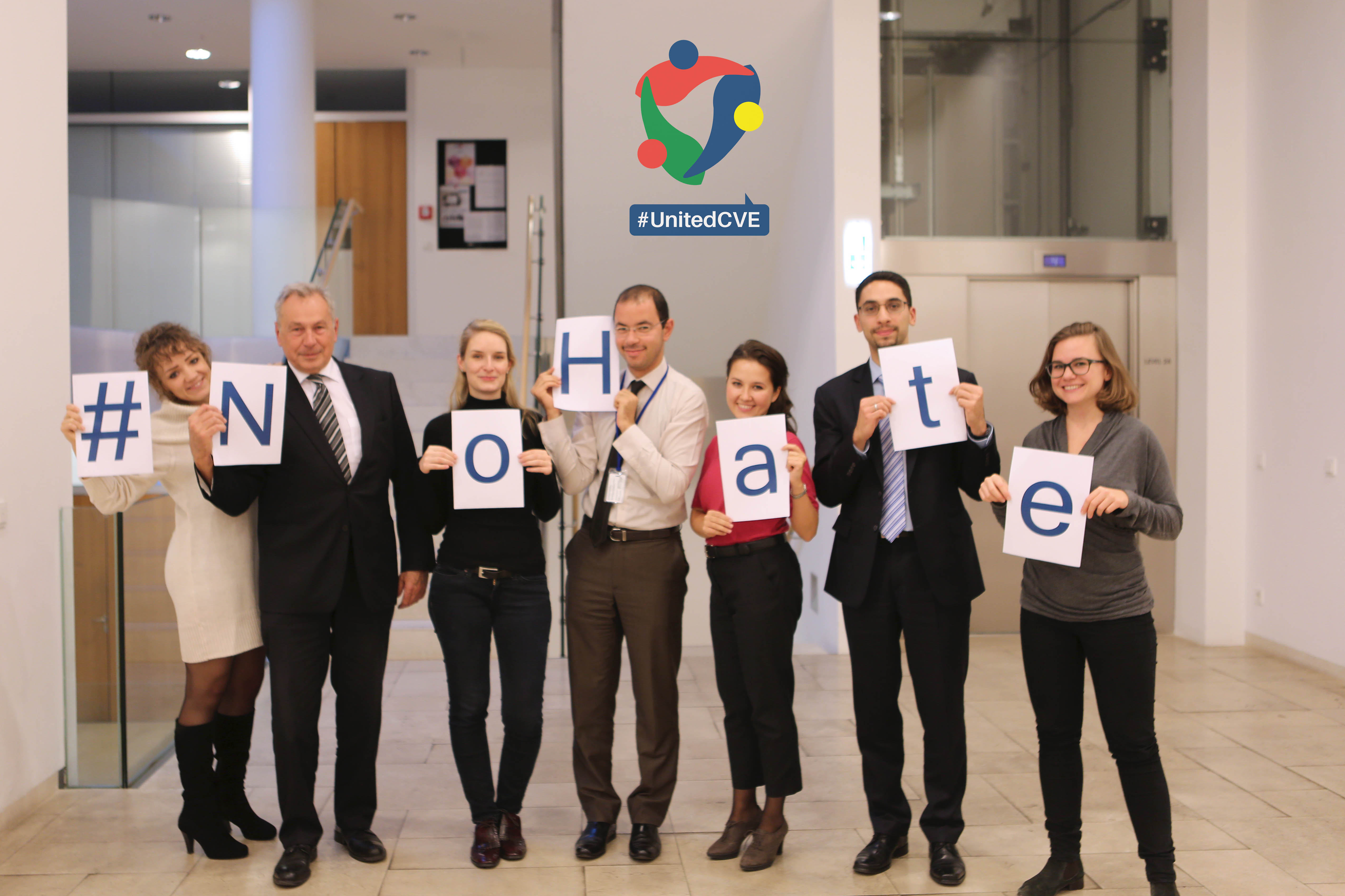 Ahead of the International Tolerance Day, members of the OSCE Transnational Threats Department and #UnitedCVE team supporting the #NoHate campaign, launched by the Super Citizens initiative, Vienna, 14 November 2015.