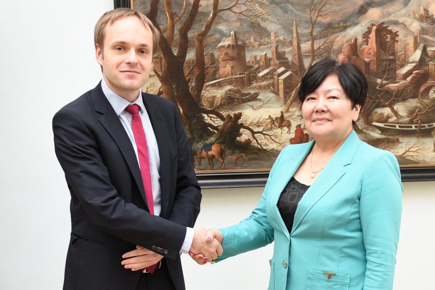 Special Representative and Co-ordinator for Combating Trafficking in Human Beings, Ambassador Madina Jarbussynova, meets with Jakub Kulhánek, Vice-Minister for Security and Multilateral Issues in the Czech Foreign Ministry, Prague, 27 November 2015.