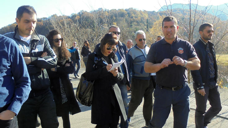 Predrag Mostrokol, Chief of Rescue Service of Cetinje, explains floods at Rijeka Crnojevica to a group of municipal and Aarhus Centre representatives from Albania and Montenergo, 9 December 2015.