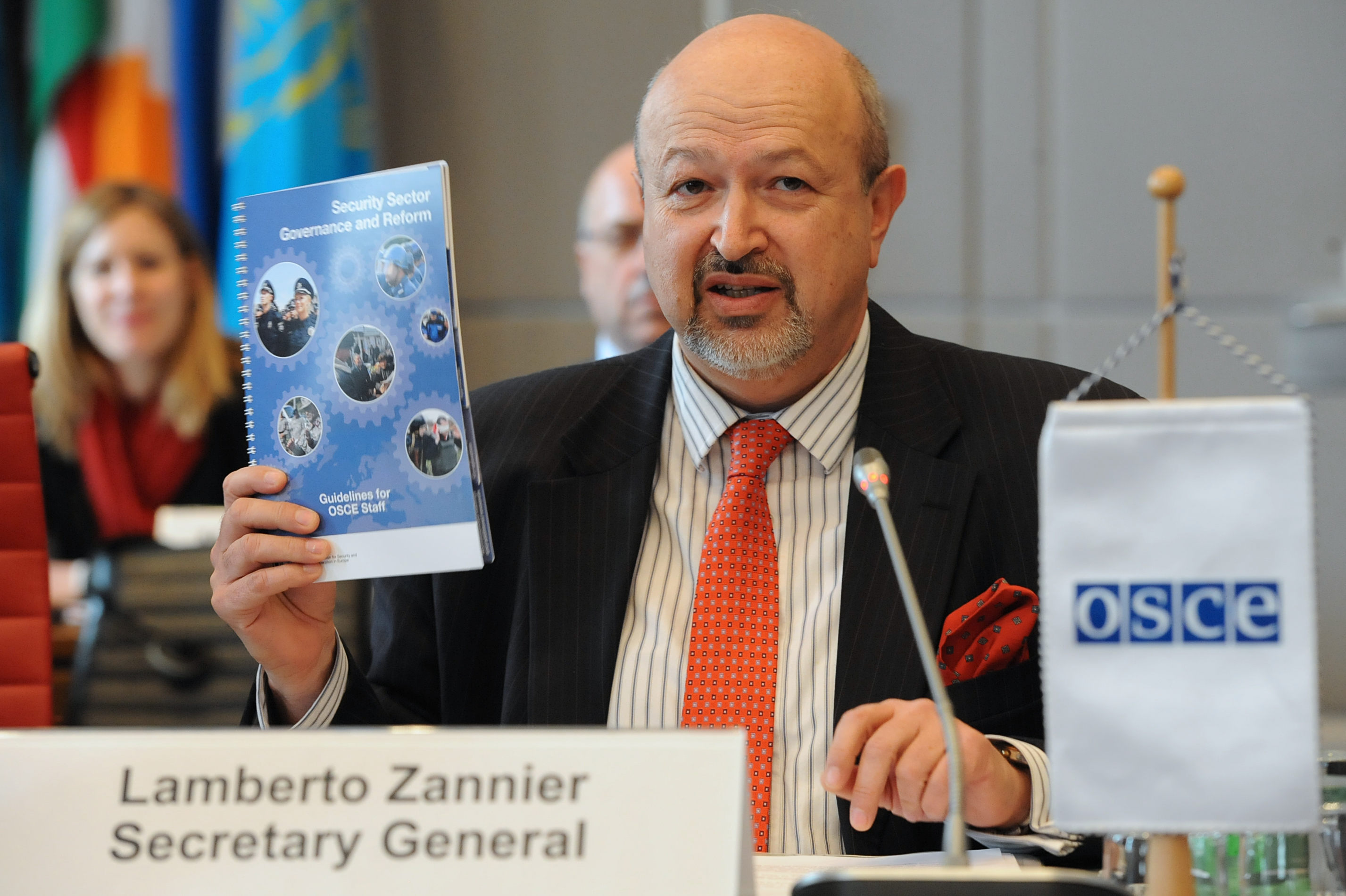 OSCE Secretary General Lamberto Zannier presenting a new publication, Security Sector Governance and Reform: Guidelines for OSCE Staff, in Vienna, 5 April 2016