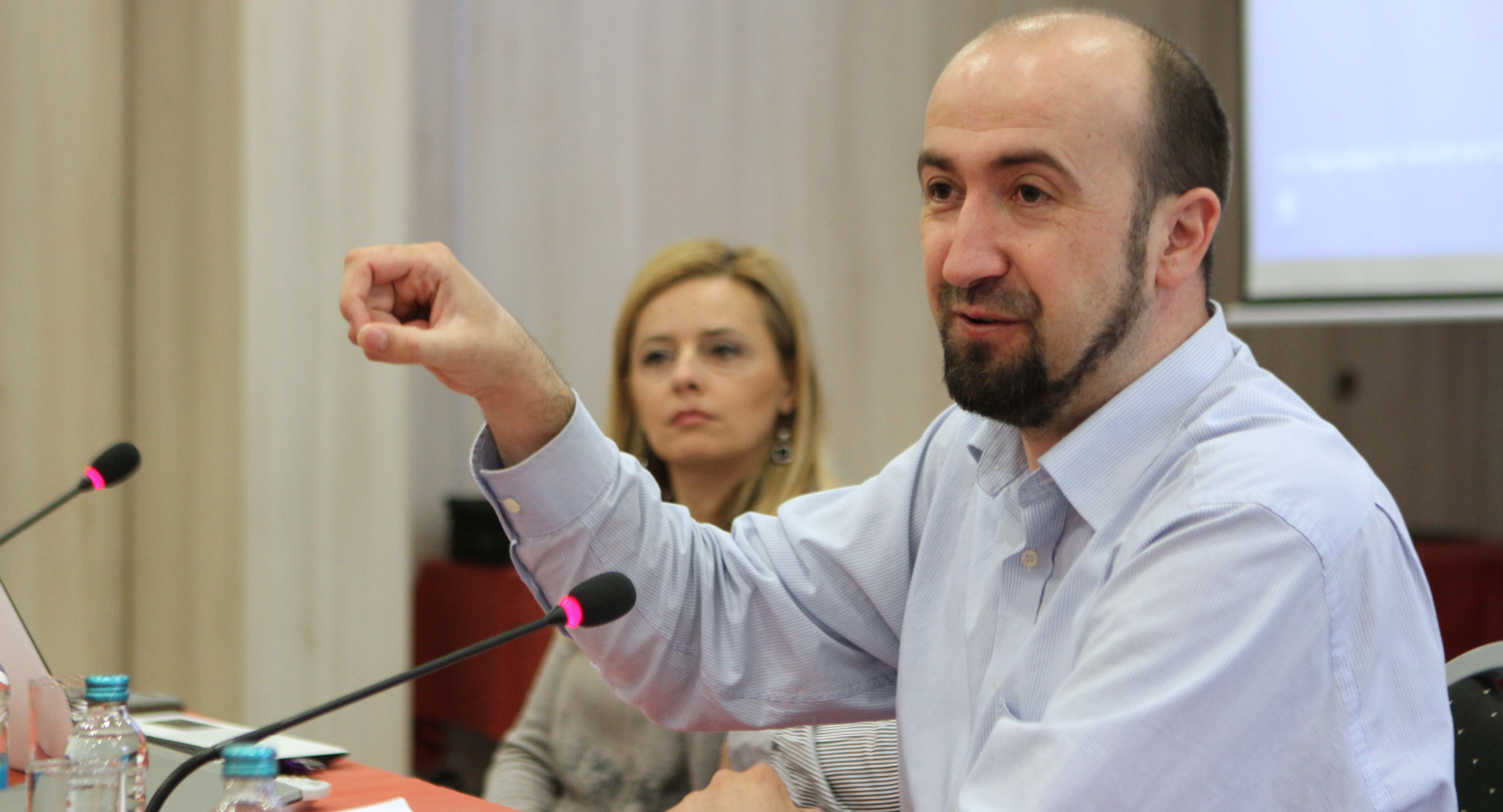 Theologian Muhamed Jusic discussing with participants religious aspects of violent extremism, Youth Summit on the Role of Youth in Countering Violent Extremism, Teslic, 18 April 2016