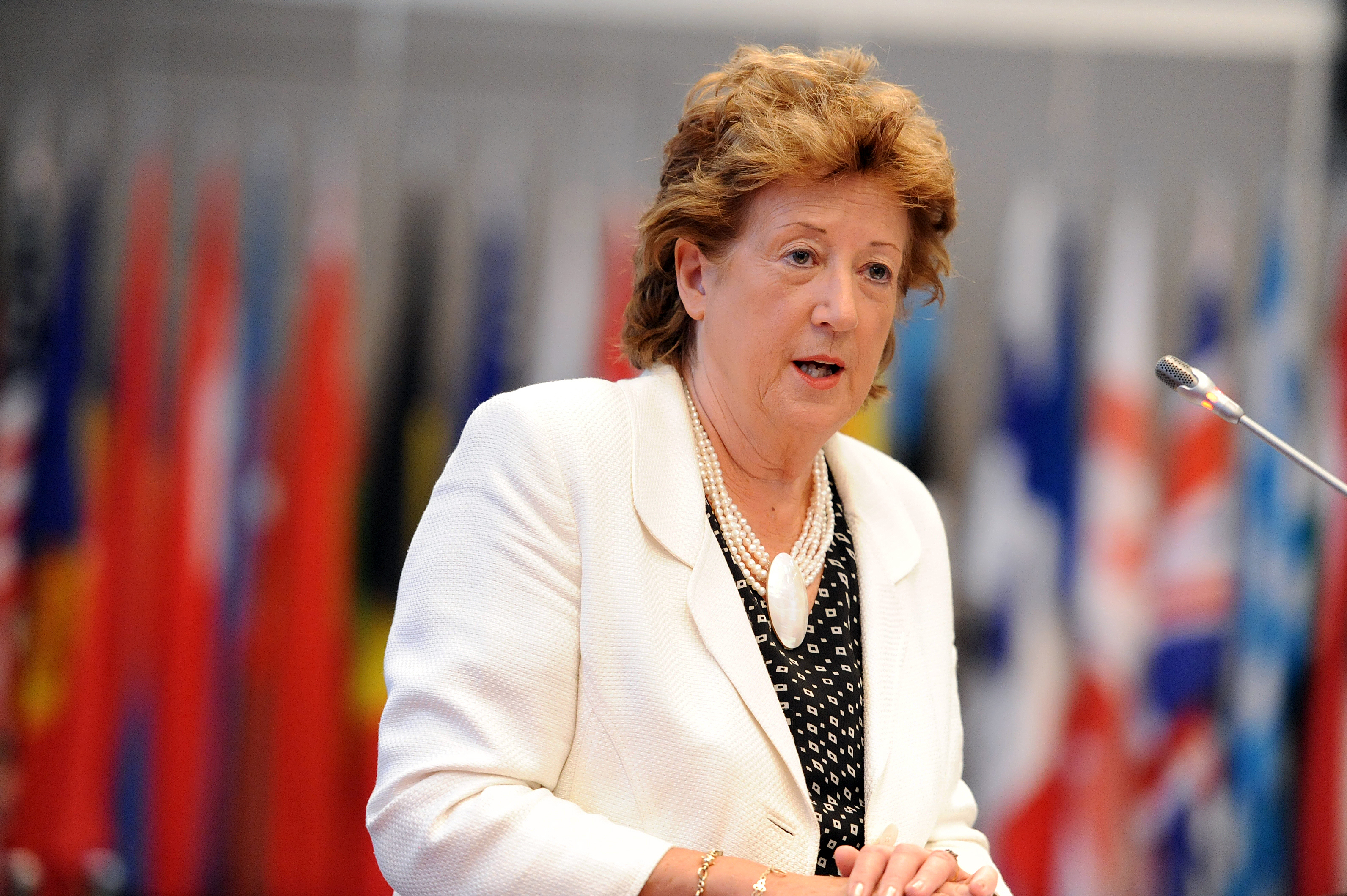 Baroness Joyce Anelay, the UK Minister of State at the Foreign and Commonwealth Office and Department for International Development, speaks about the protection and empowerment of women at the OSCE conference on gender in Vienna, 22 July 2016.