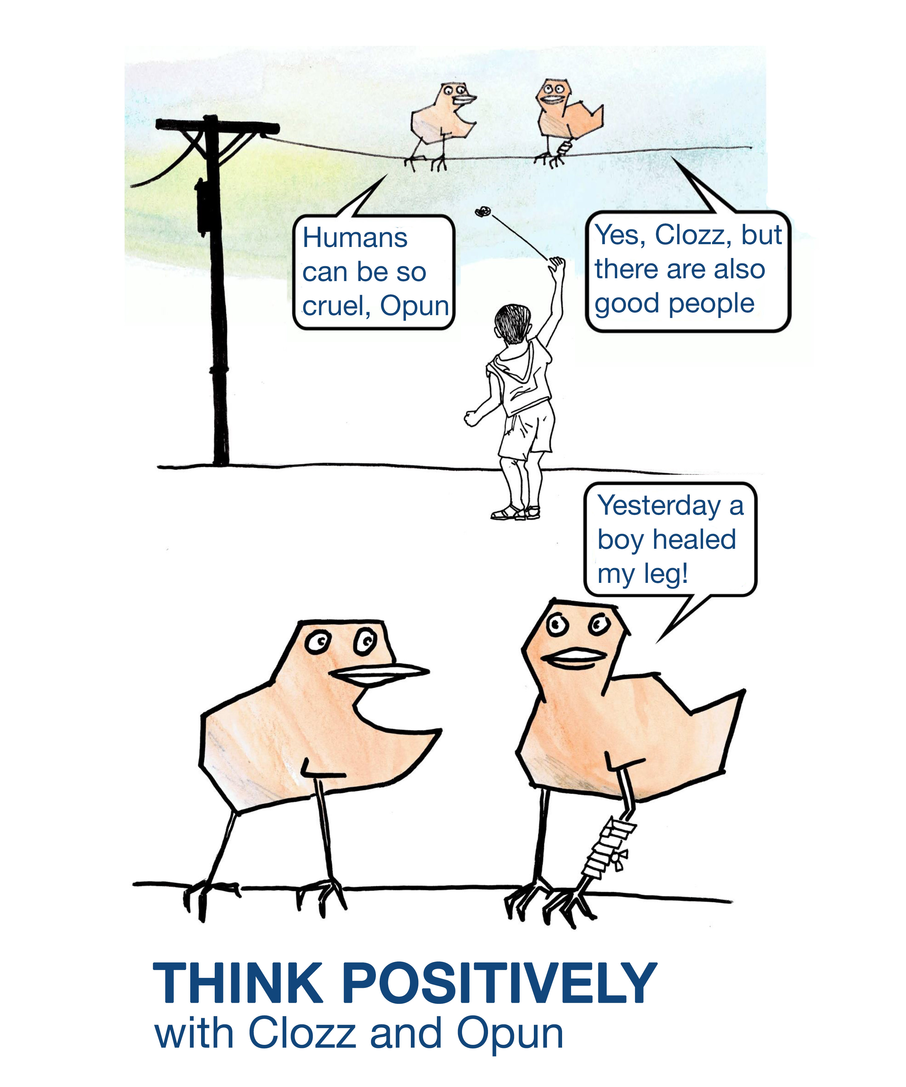 Clozz often sees things in a negative way, he is wary and sceptic. Opun is careful before he judges and tends to think positively.