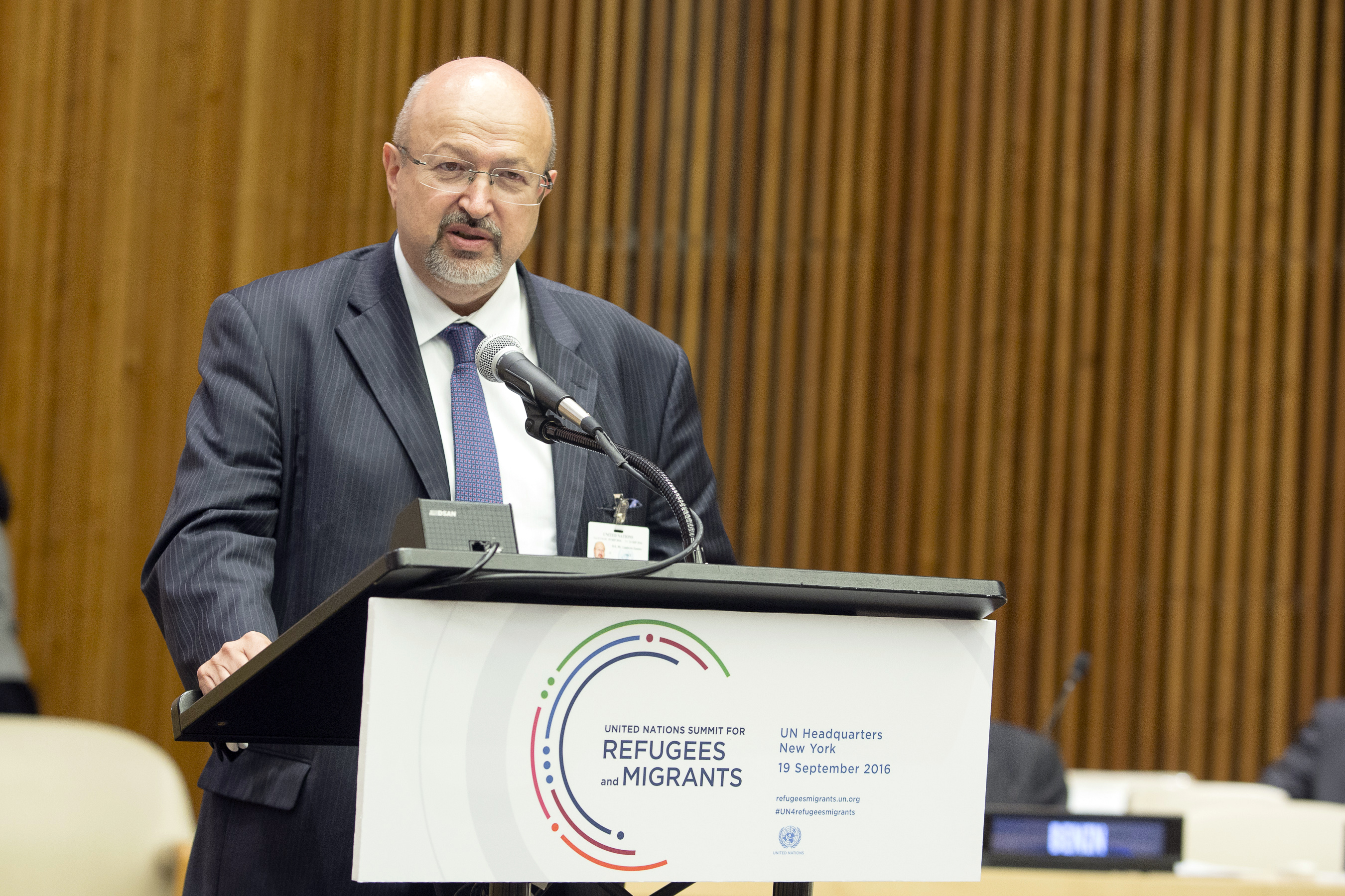 OSCE Secretary General Lamberto Zannier addresses the United Nations high-level summit on large movements of refugees and migrants in New York, 19 September 2016.