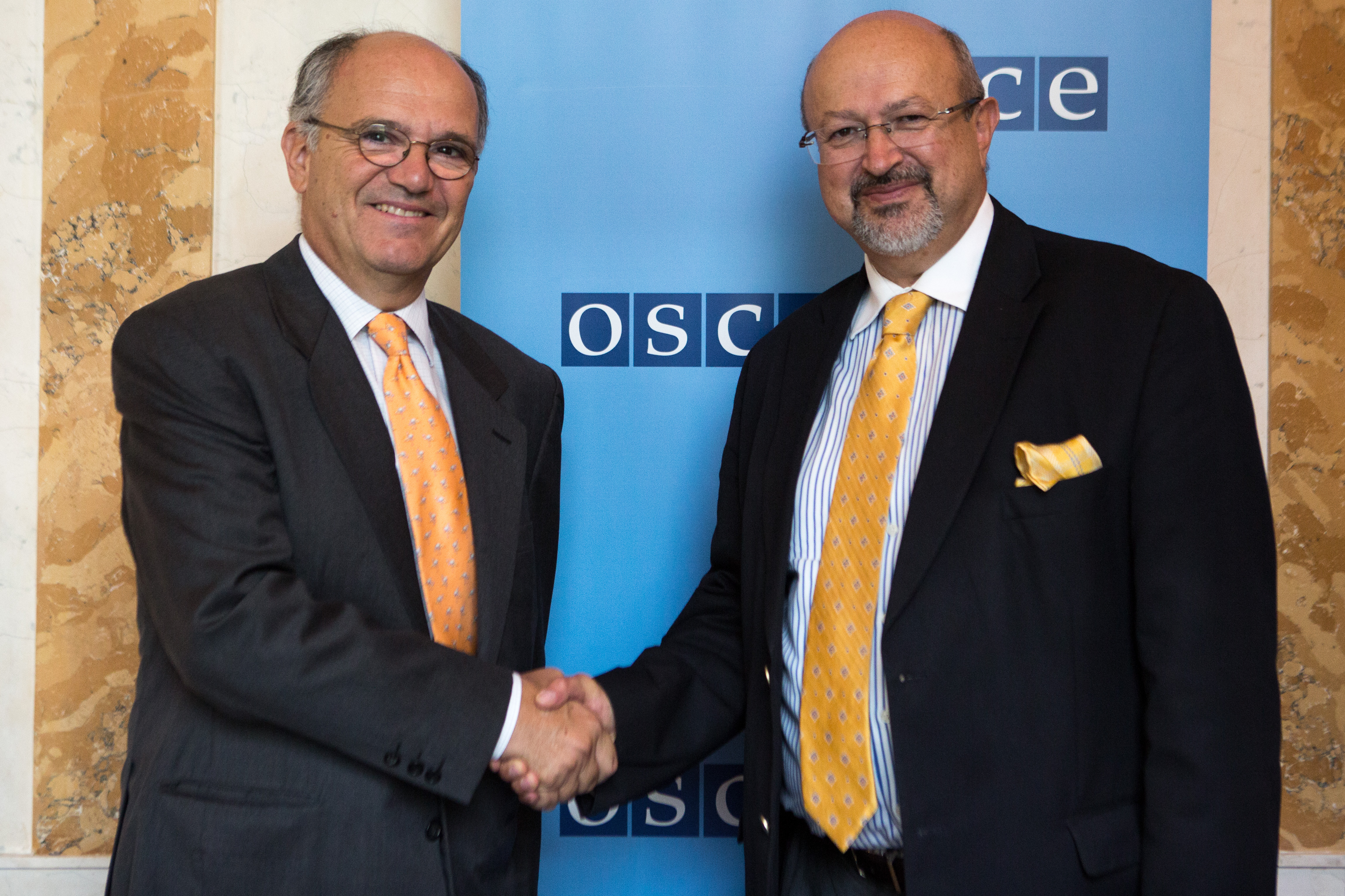 H.E. Ambassador Alexios Zannos (l), Permanent Mission of Greece to the OSCE, with OSCE Secretary General Lamberto Zannier (r), Vienna, 12 September 2016.