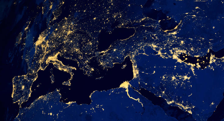 Satellite map of Mediterranean region's cities night