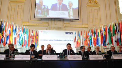 The conference, hosted by the Austrian Chairmanship of the OSCE Mediterranean Contact Group and the OSCE Secretariat, gathered more than 400 representatives from OSCE participating States and Partners for Co-operation, as well as high-level representatives from the UN Support Mission in Libya, the League of Arab States, the Union for the Mediterranean, the International Organization for Migration, the United Nations High Commissioner for Refugees, the North Atlantic Treaty Organization, youth organizations north and south of the Mediterranean, think tanks, academic institutions and the media. Youth representatives from north and south of the Mediterranean participated actively in the conference.