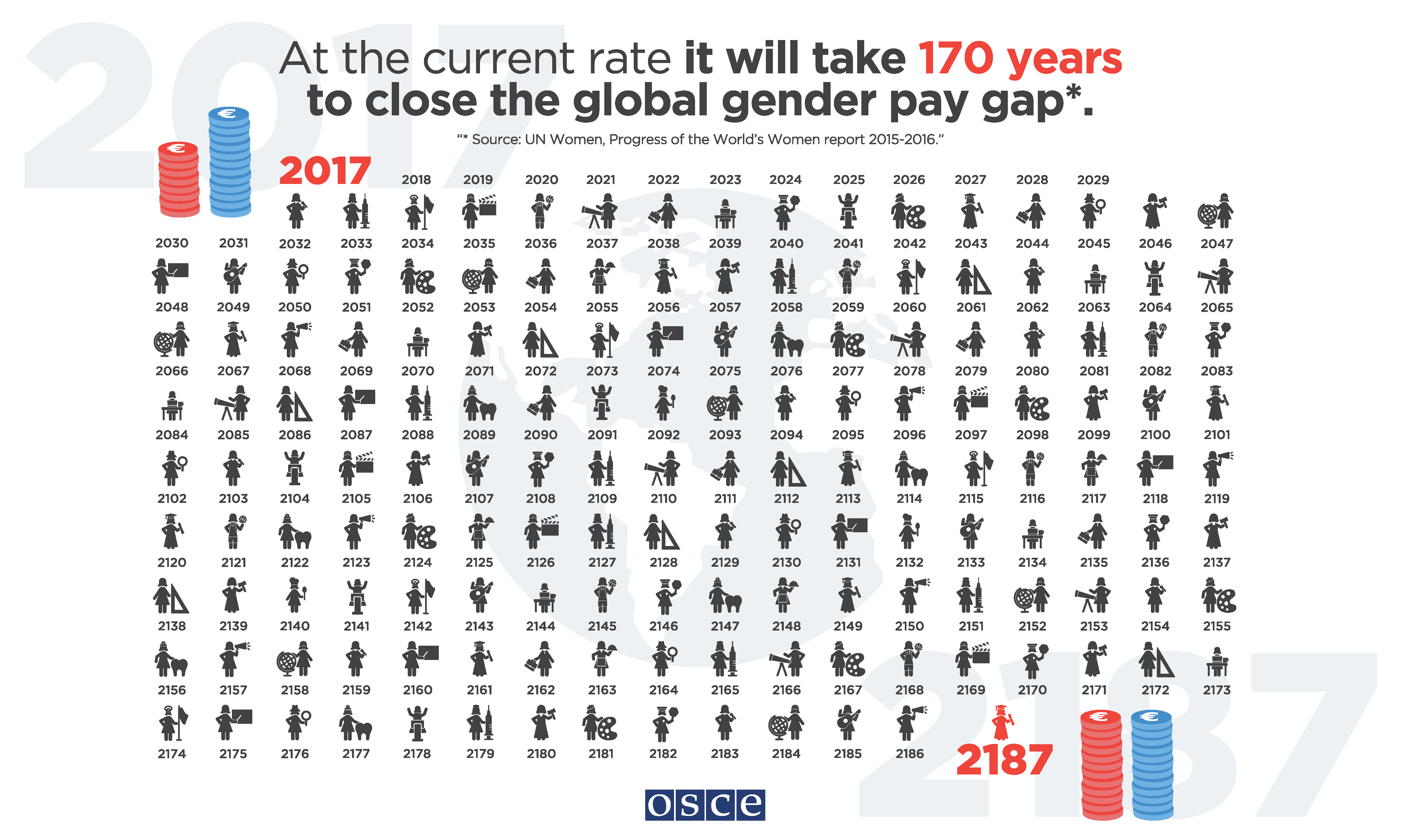 At the current pace of development, women are expected to make 100 Euro for every 100 Euro a man makes in 2187.