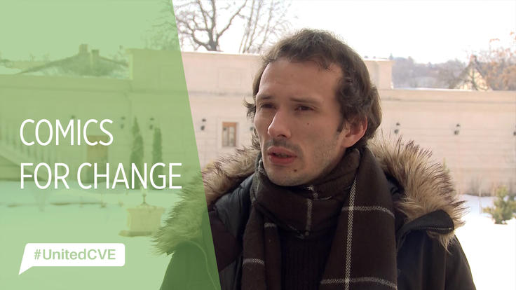 Cover image for the "Comics For Positive Change" video, #UnitedCVE campaign.