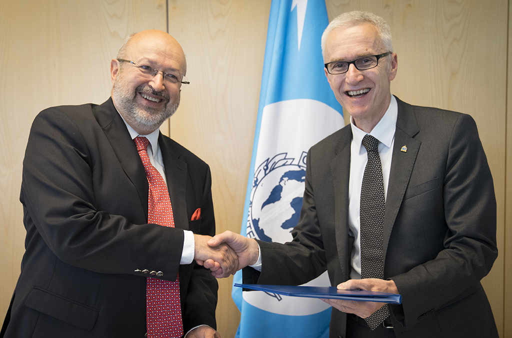 OSCE Secretary General Lamberto Zannier and INTERPOL Secretary General Jürgen Stock (r) sign a joint action plan on increased collaboration on the margins of the 45th INTERPOL European Regional Conference, St Johann im Pongau, Austria, 17 May 2017.