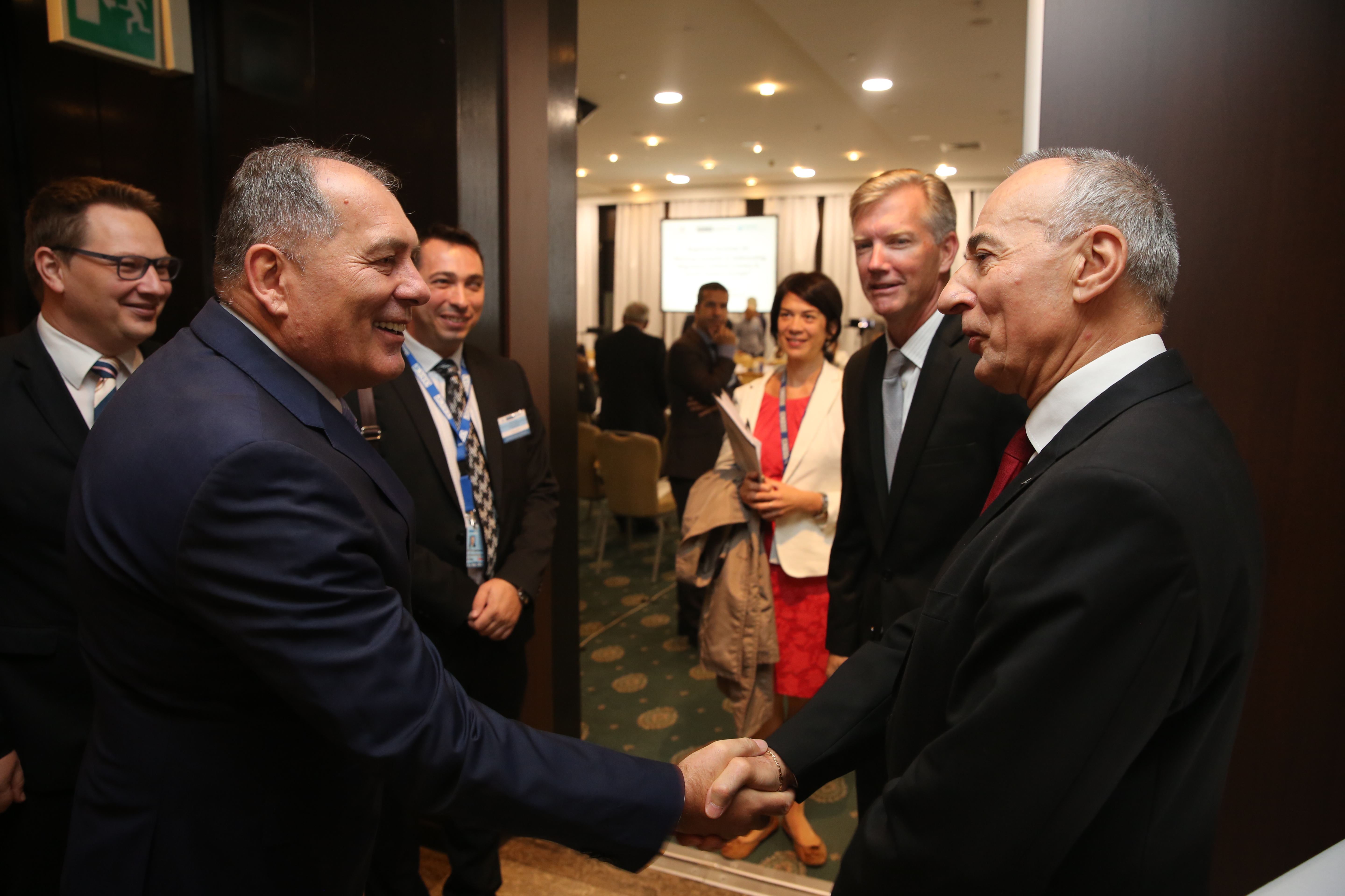 Dragan Mektić (l), Minister of Security of Bosnia and Herzegovina, and Guy Vinet, Head of OSCE Strategic Police Matters Unit, at a regional seminar in Sarajevo, 19 September 2017.