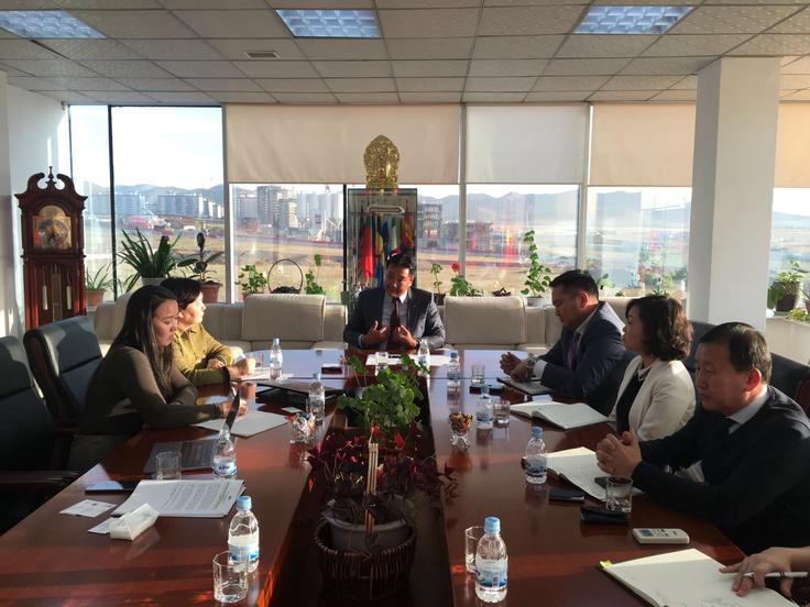 OSCE Special Representative and Co-ordinator for Combating Trafficking in Human Beings, Madina Jarbussynova, discussing how best to strengthen victim identification with the Head of the Mongolian Immigration Agency, Mr. Murun