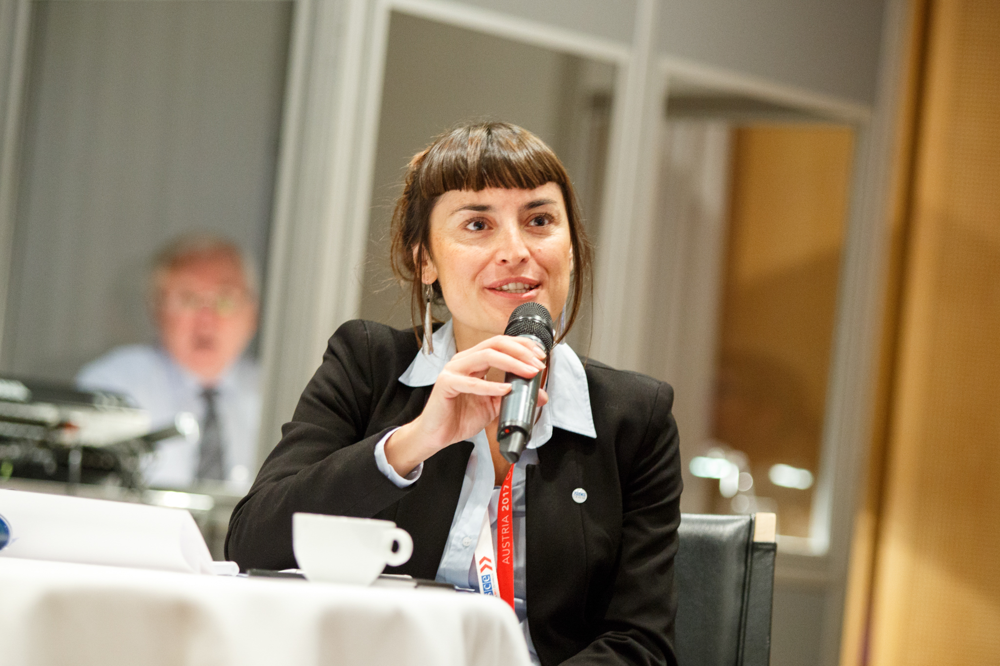 Ewa Sapiezynska, human rights officer at ODIHR participates in discussion at the NAP Acadamy, Vienna, 20 October 2017.