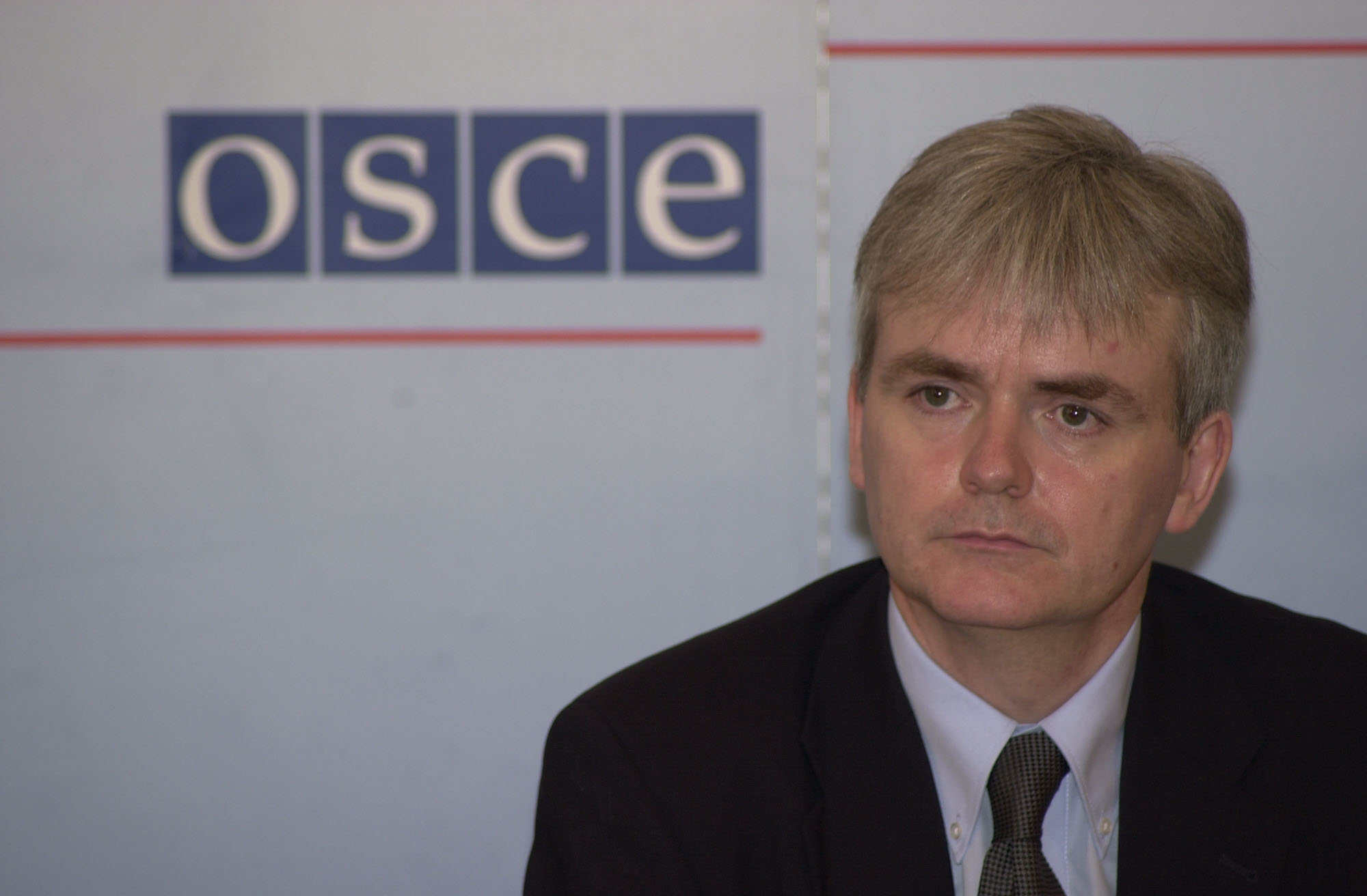 OSCE spokesperson Richard Murphy looks on at a news conference in Vienna, 4 November 2003.
