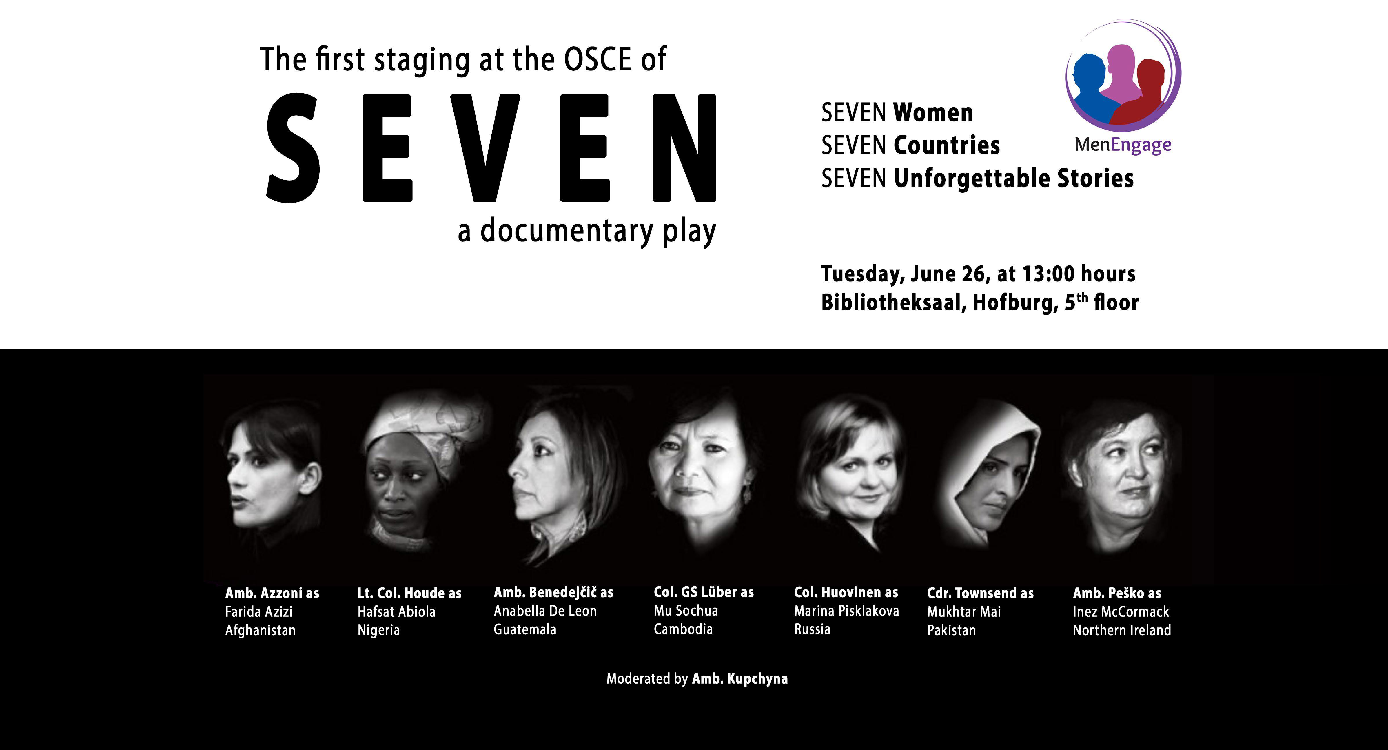 Flyer for the staging of the documentary play SEVEN at the OSCE