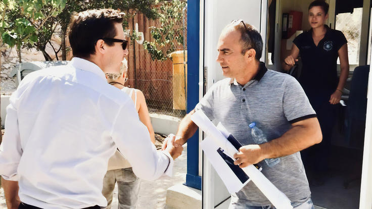 Valiant Richey (l), OSCE Acting Co-ordinator for Combating Trafficking in Human Beings, visiting the reception centre for asylum seekers in Kofinou, Cyprus, 11 September 2018.