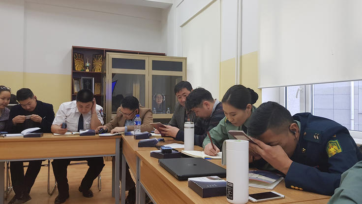 Mongolia’s law enforcement personnel identifying the security features in the documents during the practical exercise. Ulaanbaatar, Mongolia, 26-30 November 2018.