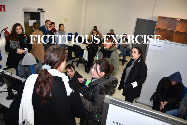During the operations conducted by labour inspectors, participants of the simulation exercise discuss different types and means of assistance for the identified victims of trafficking.