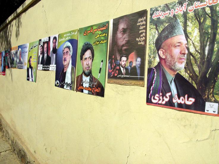Pre-election posters in Kabul, 7 October 2004. Afghanistan held its first-ever presidential election on 9 October.