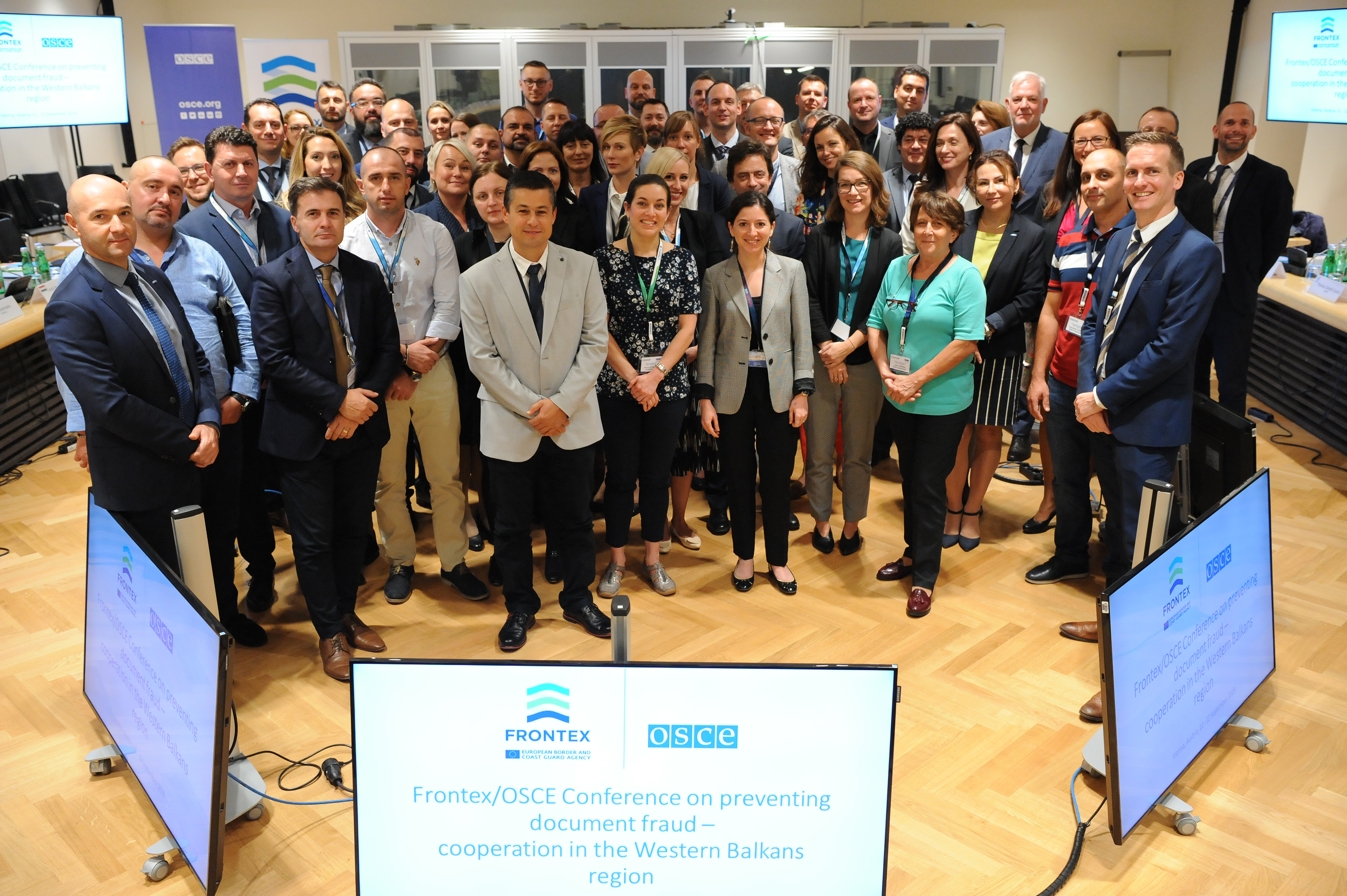 Participants at the Frontex/OSCE joint conference for the Western Balkans region on preventing document fraud, Vienna, 11 September 2019.