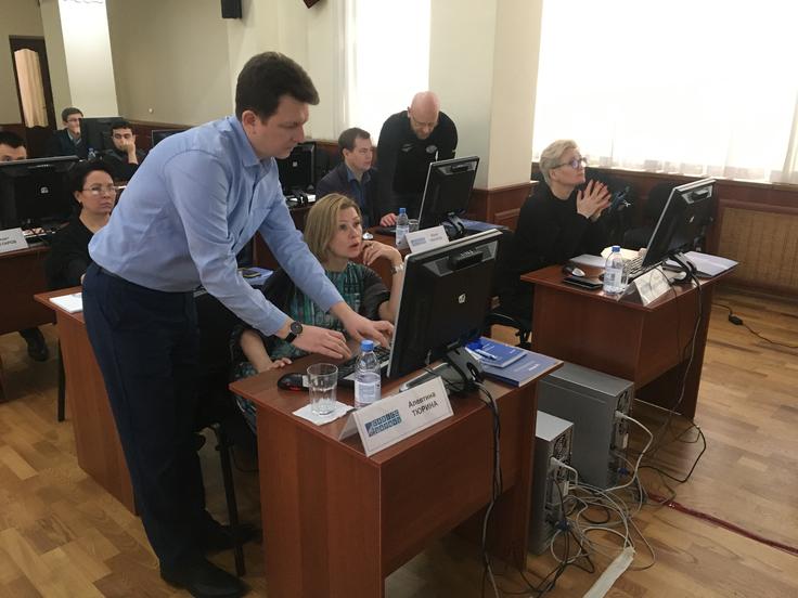 Representatives of law enforcement agencies from member States of the Central Asian Regional Information and Coordination Centre (CARICC) during hands-on exercises on combating the spread of new psychoactive substances facilitated by the Darknet, Almaty, 21 February 2020.