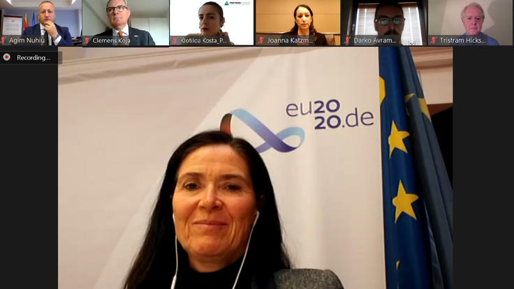 Ambassador Anke Holstein, German Embassy in Skopje, addressing the online workshop “Addressing Organized Crime and Corruption through the Re-use of Confiscated Criminal Assets”, 10 December 2020.