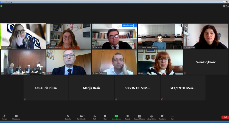 Participants at the meeting of the Executive Board of the Permanent Conference of Organized Crime Prosecutors (PCOCP), 23 February 2021.