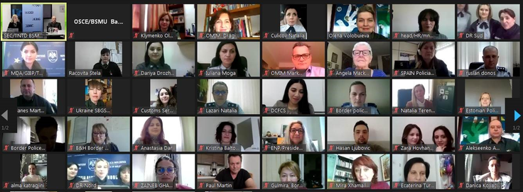 Participants of an online workshop on gender mainstreaming in human resources departments of border and law enforcement agencies organized by the Border Security and Management Unit in the OSCE’s Transnational Threats Department, 23 March 2021.