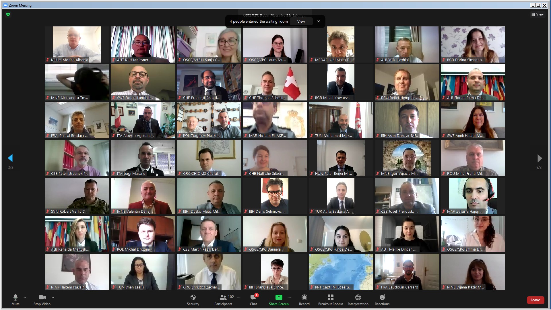 Participants of the seminar organized online by the OSCE Conflict Prevention Centre and the Republic of Albania, 27 May 2021.