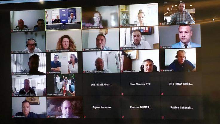 Participants during an online regional workshop "Implementing Intelligence-Led Policing (ILP) in South-Eastern Europe: Sharing Experiences and Lessons Learned", 23 June 2021.