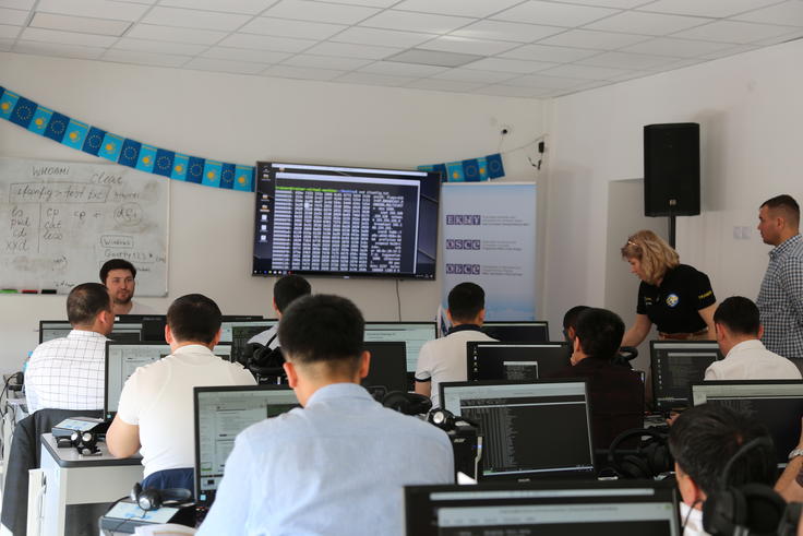 Participants of OSCE-organized training course are learning how to forensically view and read data written on a disk.
