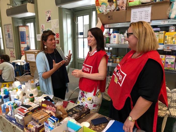 Lara Scarpitta, OSCE Senior Adviser on Gender Issues, talking to volunteers on Polish-Ukrainian border, July 2022