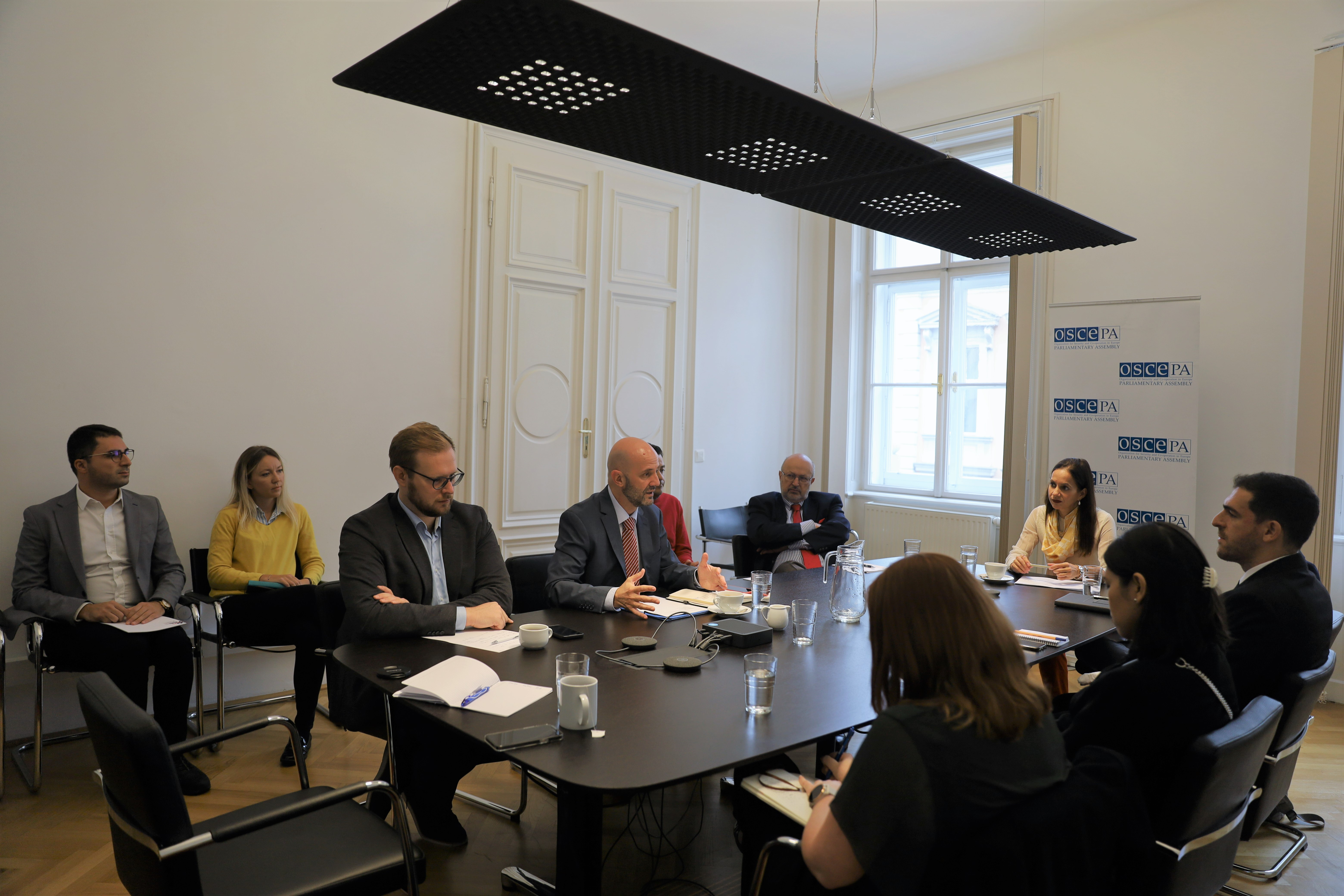 Special Representative Ambassador Miodrag Pančeski, briefing Study Visit Programme participants on the work of the OSCE Parliamentary Assembly, Vienna, 20 September 2021
